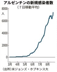 【サンパウロ=外山尚之】南米アルゼンチンで新型コロナウイルスの感染拡大が止まらない。厳格な外出規制で周辺国に比べ抑え込んでいたが、経済活動の再開とともに感染者が増加。24日には新規感染者数・死者数とも過去最多を更新した。経済にも深刻な影響が生じている。