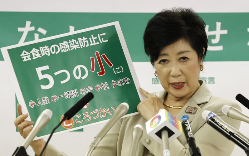 東京都などで新型コロナウイルスの新規感染者が最多を更新するなか、政府や都が会食時のマスク着用の呼びかけを強めている。会食を発端とする感染拡大を防ぐ狙いで、企業の間でも会食の自粛や在宅勤務拡大の動きが再び広がっている。